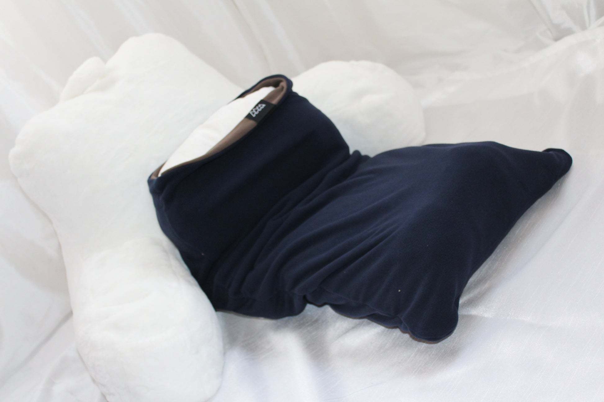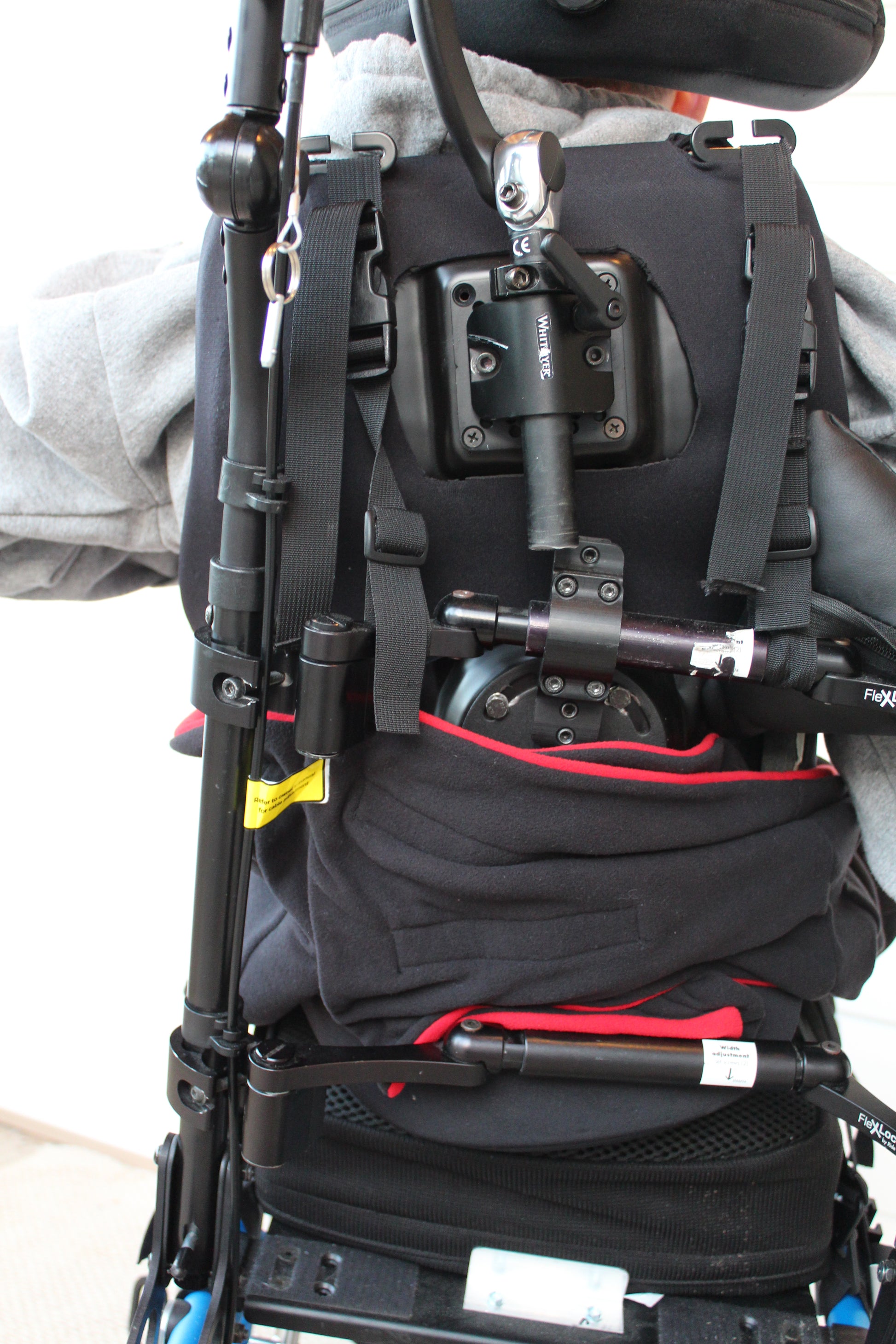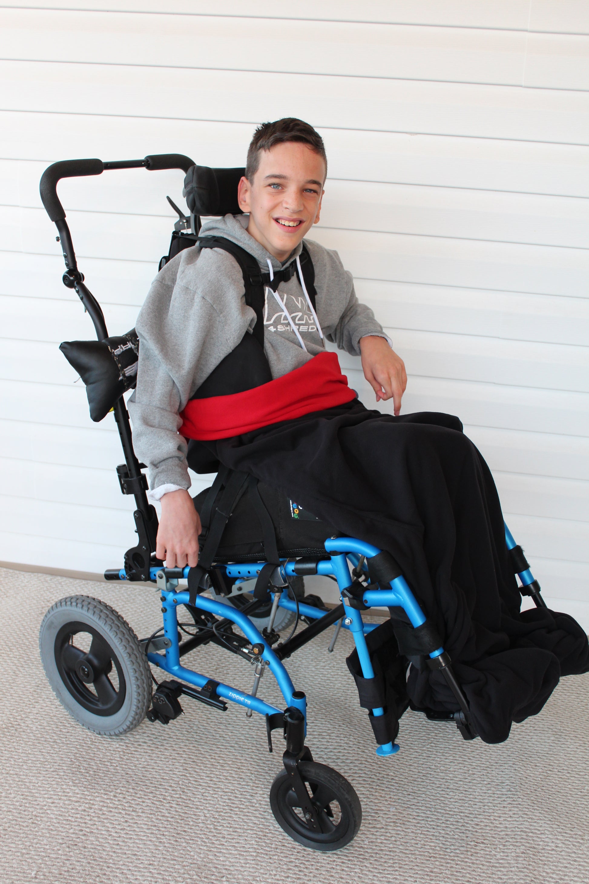 Reversible Double-lined fleece leg sack that attaches with Velcro behind the wearers back securing it in place while also protecting the lower back area against the cold. In many cases, it can also be stretched around the back of a custom molded seat to fasten behind the back rest (of some wheelchairs). The sack is tucked around the thighs and pulled up the back of the legs to ensure the best coverage.